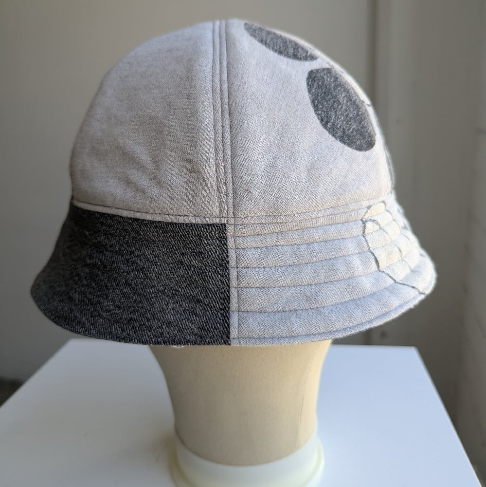 Each of these reversible bucket hats is handmade in Los Angeles, constructed from individually sourced vintage garments. Every piece is one of a kind. Fabrics vary from cotton, denim, fleece, to wool depending on the specific hat.