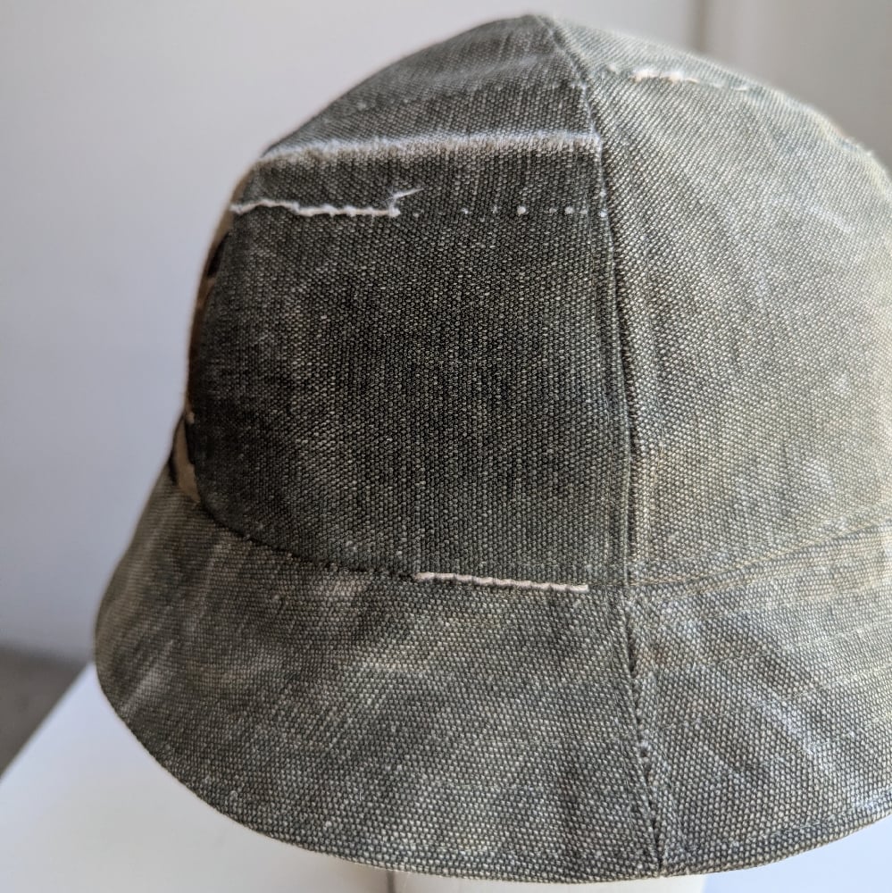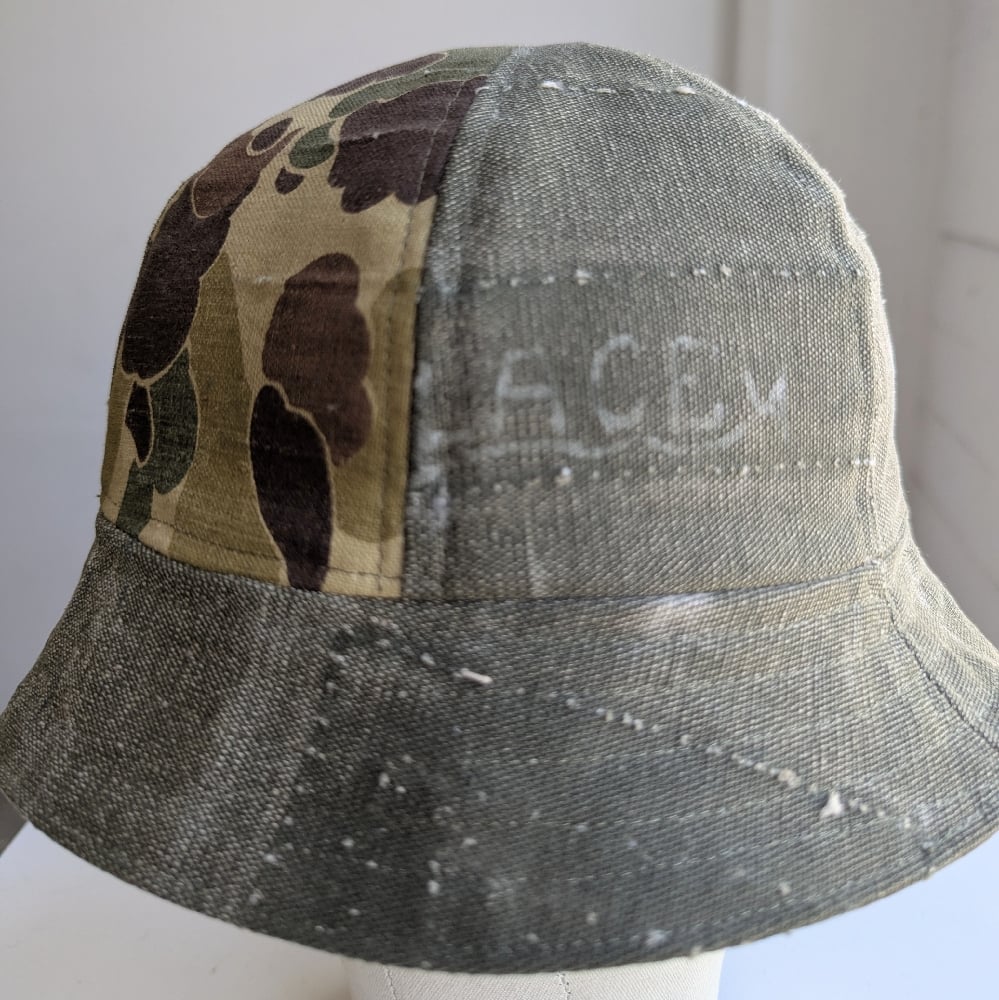 Each of these reversible bucket hats is handmade in Los Angeles, constructed from individually sourced vintage garments. Every piece is one of a kind. Fabrics vary from cotton, denim, fleece, to wool depending on the specific hat.