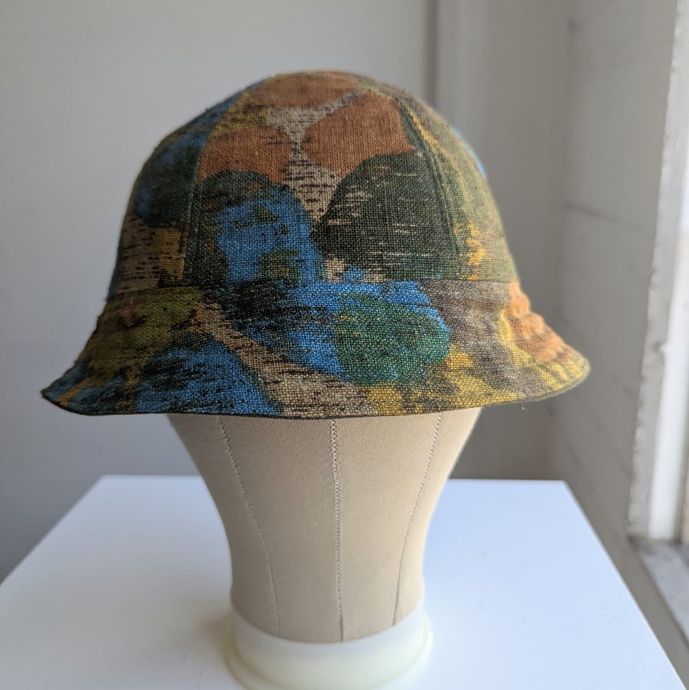 Each of these reversible bucket hats is handmade in Los Angeles, constructed from individually sourced vintage garments. Every piece is one of a kind. Fabrics vary from cotton, denim, fleece, to wool depending on the specific hat.