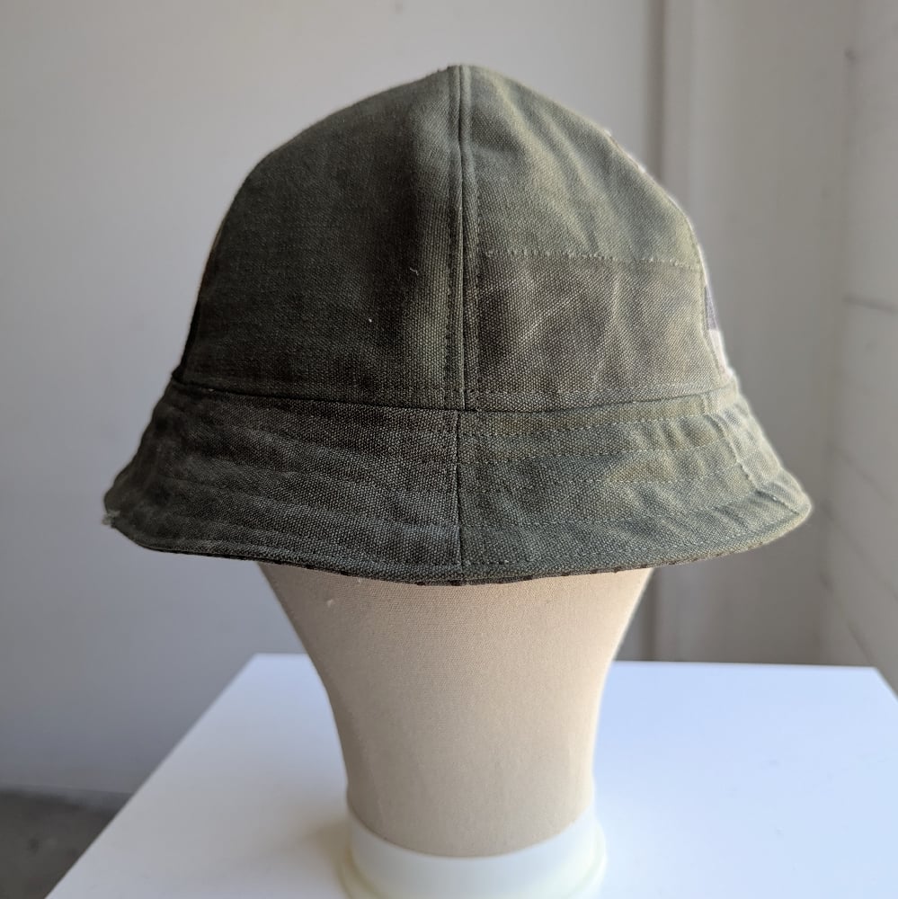 Each of these reversible bucket hats is handmade in Los Angeles, constructed from individually sourced vintage garments. Every piece is one of a kind. Fabrics vary from cotton, denim, fleece, to wool depending on the specific hat.