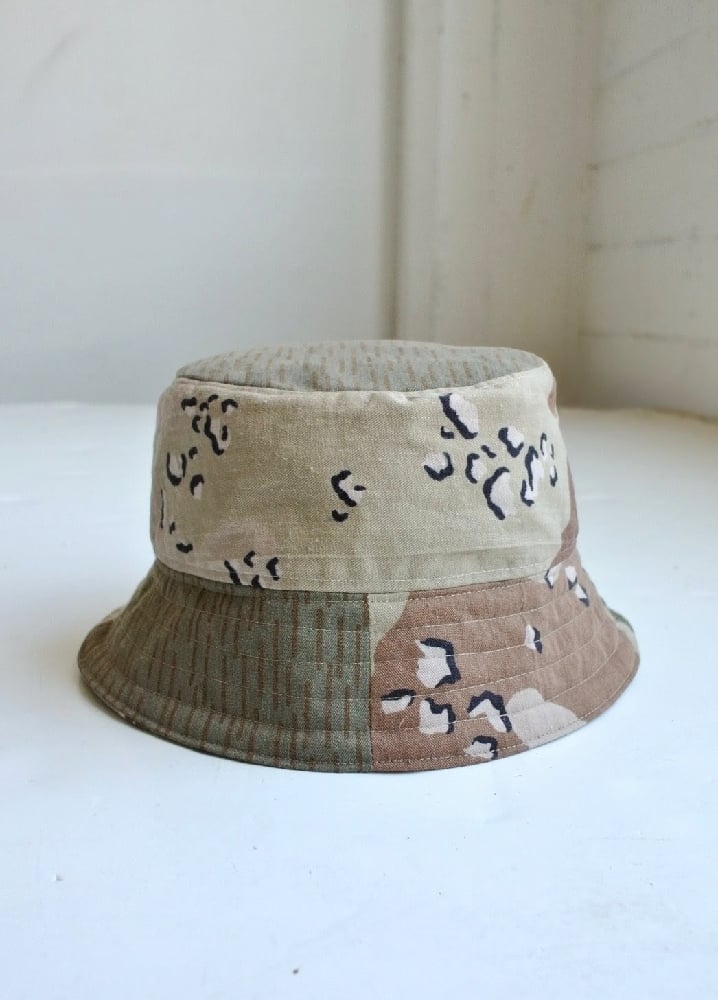 Reworked LÁ Reversible Bucket Hat Camo Beige Medium 23" 7 1/4