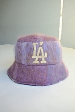 Each of these reversible bucket hats is handmade in Los Angeles, constructed from vintage garments sourced individually, making every piece one of a kind. Fabrics range from cotton, denim, fleece, and wool, depending on the specific hat.