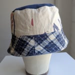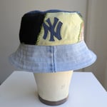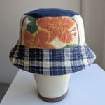 Reworked NY Reversible Bucket Hat 40s Quilt top L 23"