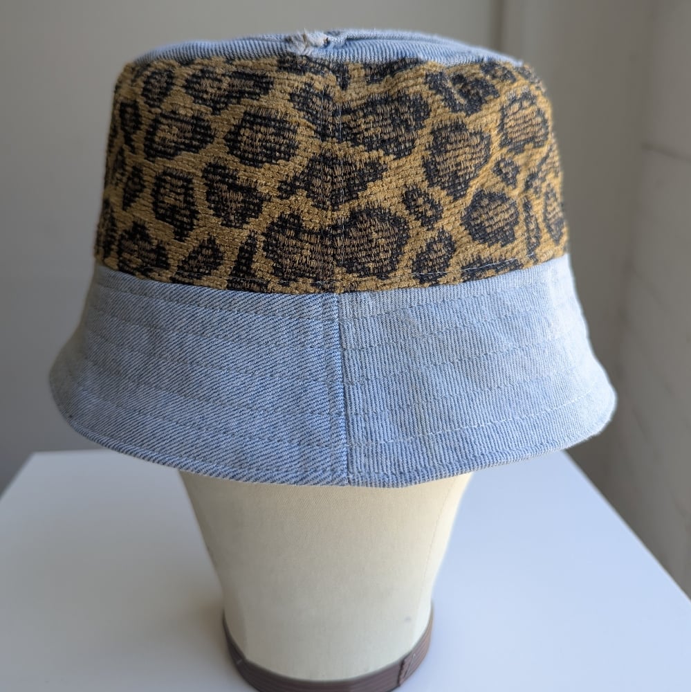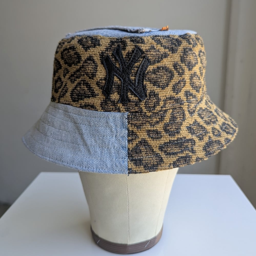 Reworked NY Reversible Bucket Hat 80s Leopard top L 23"