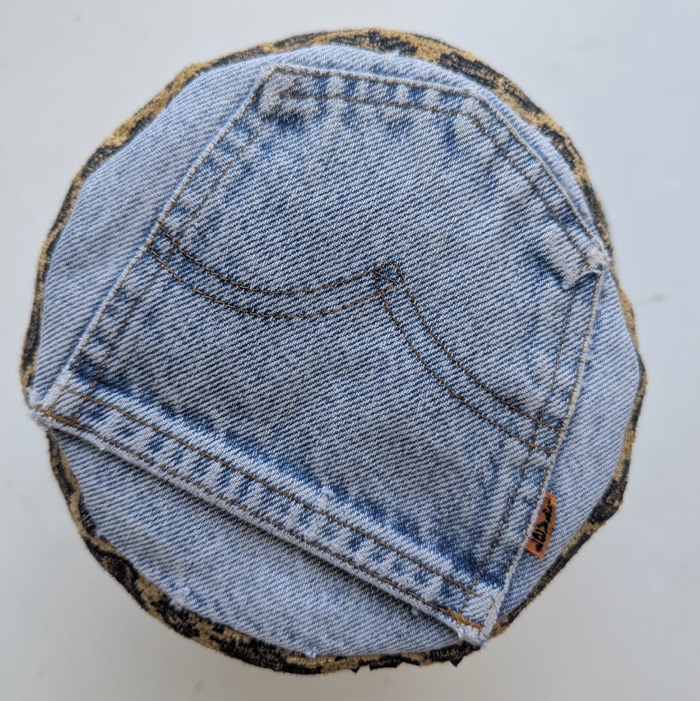 Each of these reversible bucket hats is handmade in Los Angeles, constructed from individually sourced vintage garments. Every piece is one of a kind. Fabrics vary from cotton, denim, fleece, to wool depending on the specific hat.