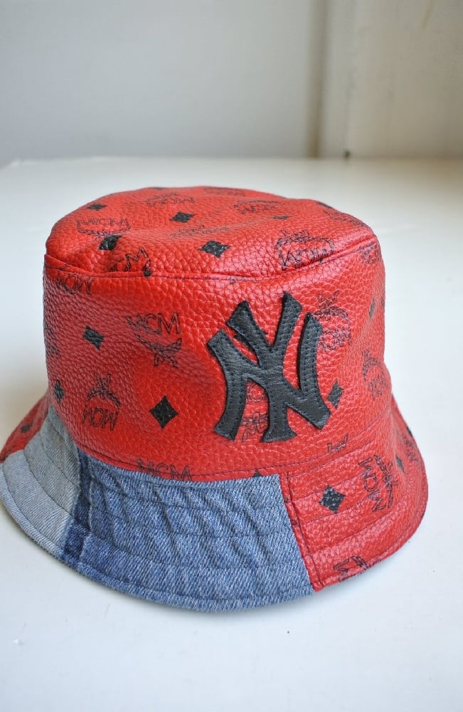 Reworked NY Reversible Bucket Hat MCM Red Small 22"