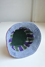 Each of these reversible bucket hats is handmade in Los Angeles, constructed from vintage garments sourced individually, making every piece one of a kind. Fabrics range from cotton, denim, fleece, and wool, depending on the specific hat.