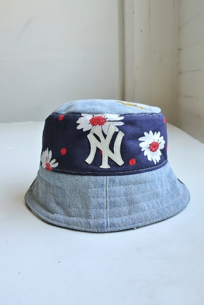 Reworked NY Reversible Bucket Hat S/M Navy Flower Power 22"-23"
