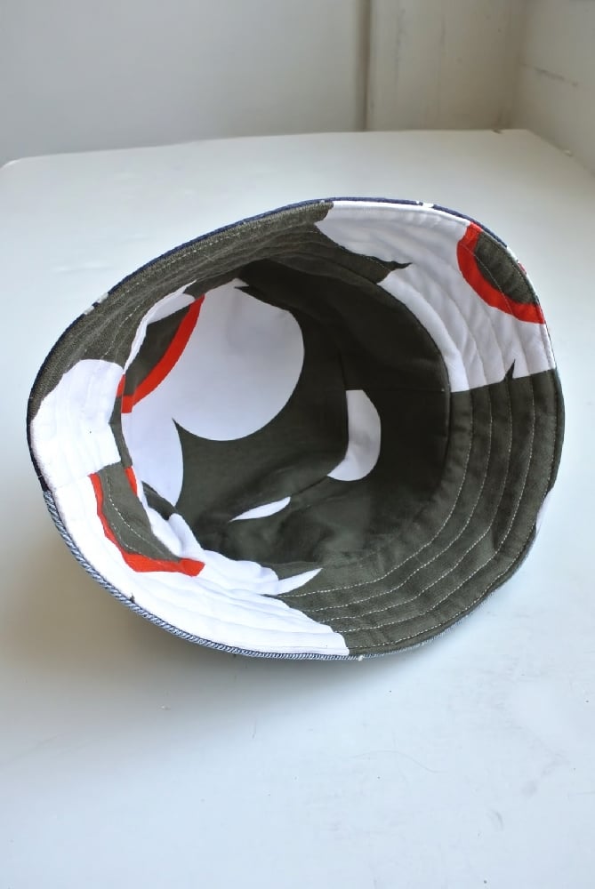 Each of these reversible bucket hats is handmade in Los Angeles, constructed from vintage garments sourced individually, making every piece one of a kind. Fabrics range from cotton, denim, fleece, and wool, depending on the specific hat.