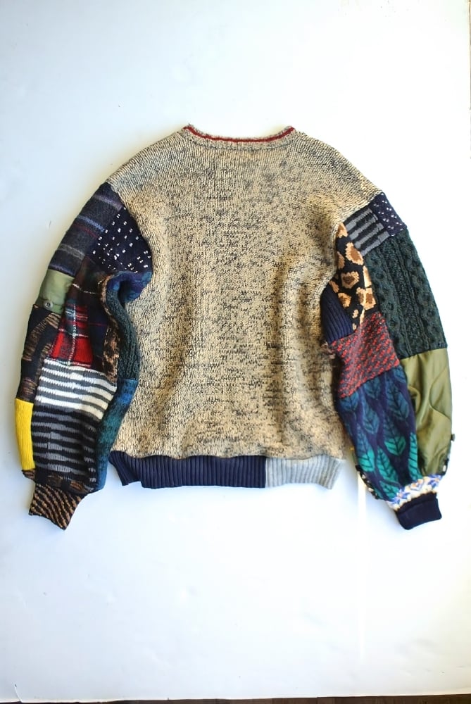 Upcycled Patchwork Sweater Yellow x Gray M/L