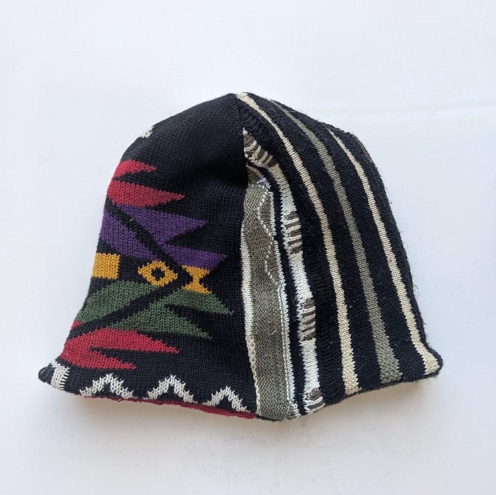Each of these reversible beanies is handmade in Los Angeles using four different vintage sweaters, making every piece truly one of a kind.