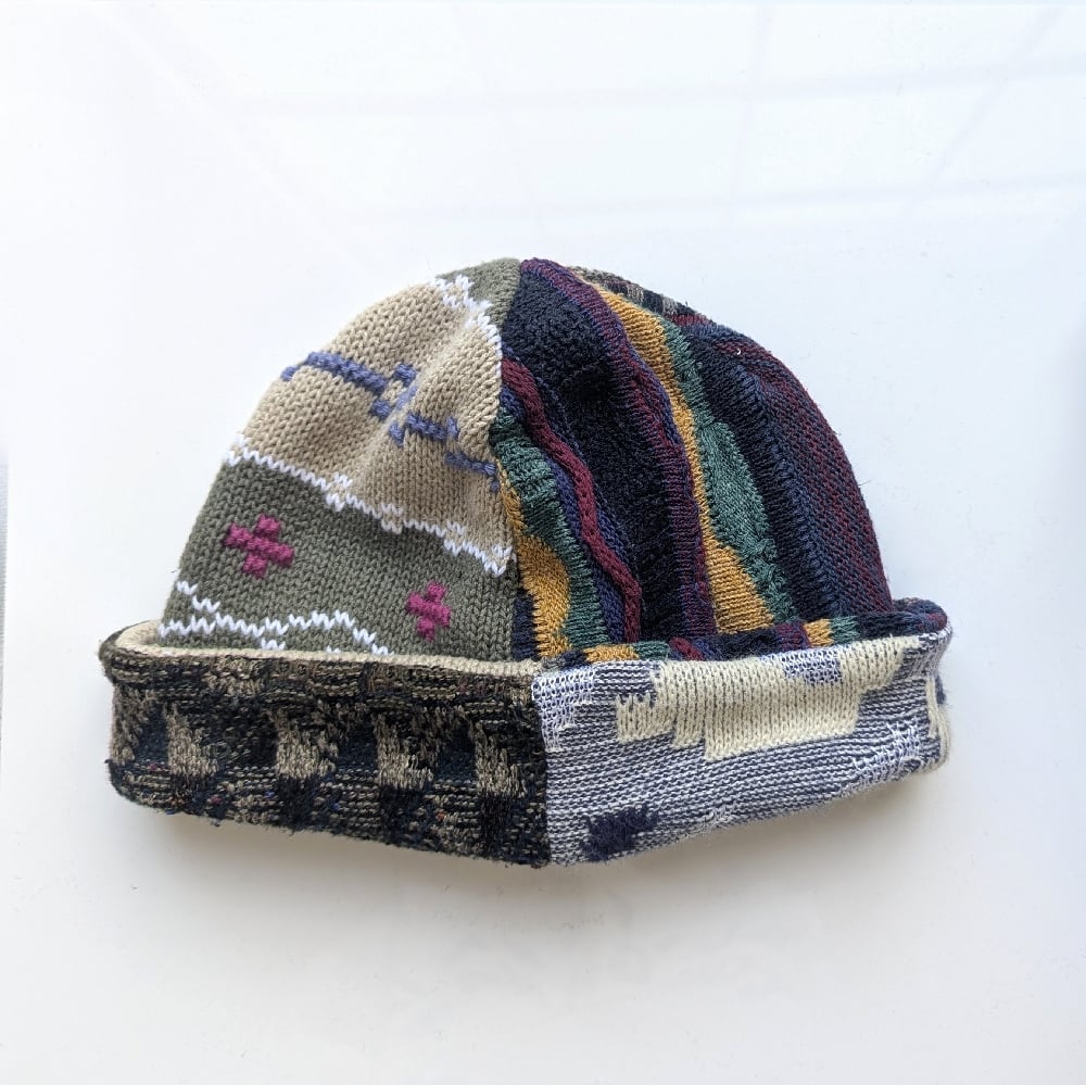 Each of these reversible beanies is handmade in Los Angeles using four different vintage sweaters, making every piece truly one of a kind.