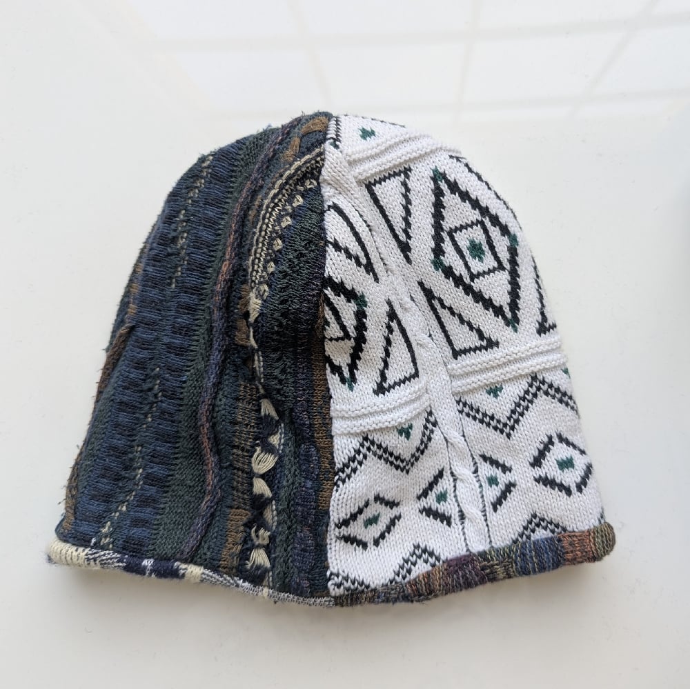 Each of these reversible beanies is handmade in Los Angeles using four different vintage sweaters, making every piece truly one of a kind.