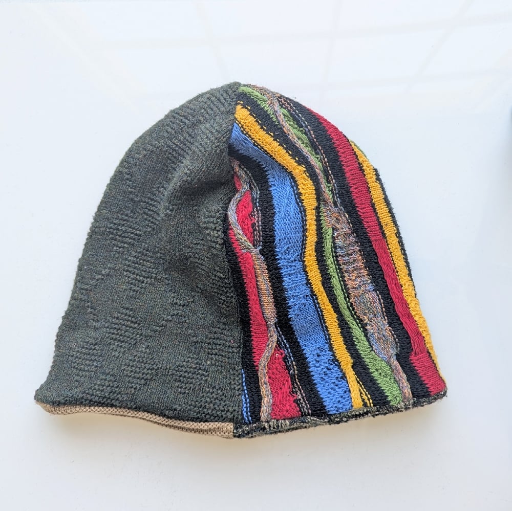 Each of these reversible beanies is handmade in Los Angeles using four different vintage sweaters, making every piece truly one of a kind.