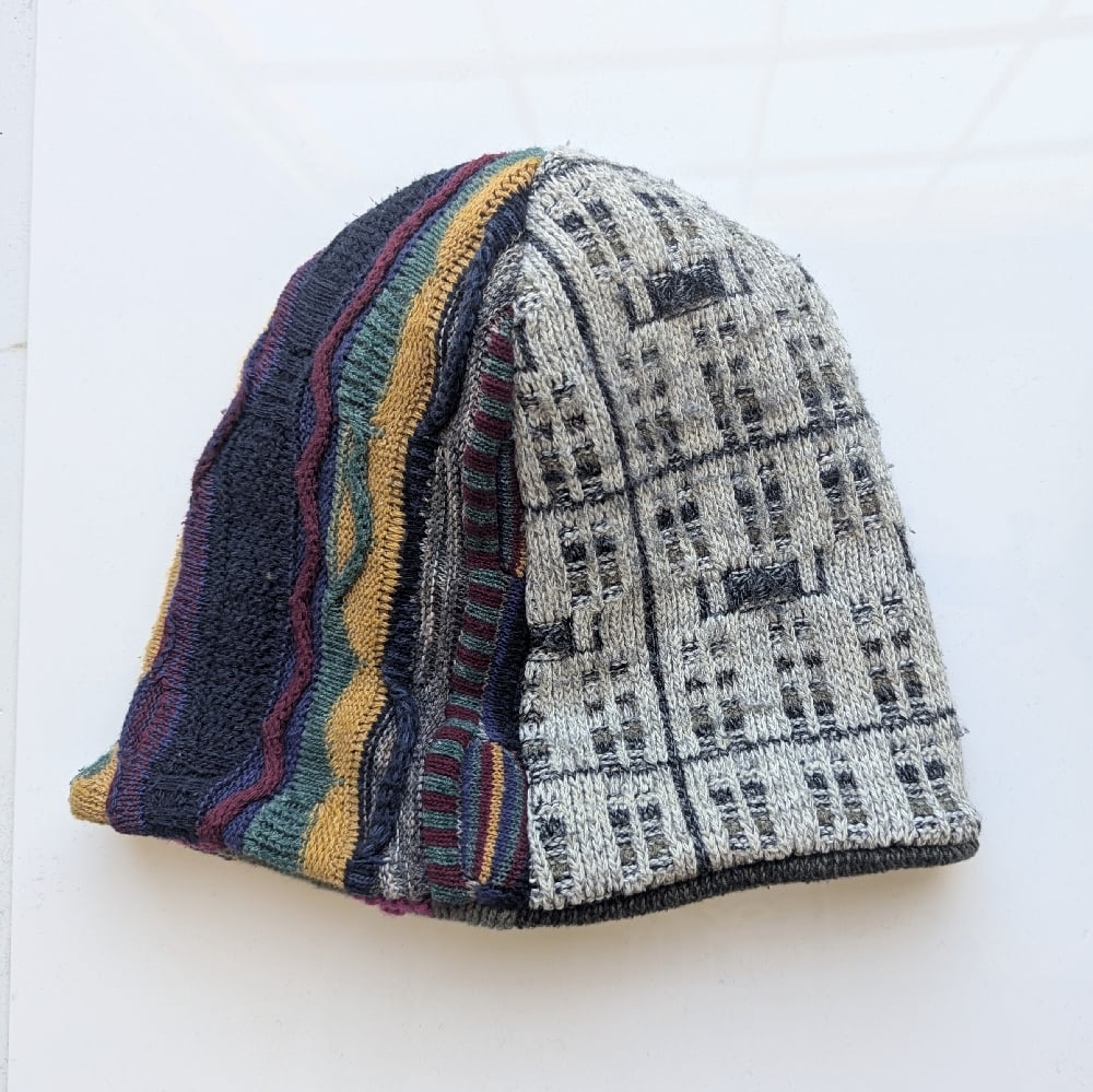 Each of these reversible beanies is handmade in Los Angeles using four different vintage sweaters, making every piece truly one of a kind.