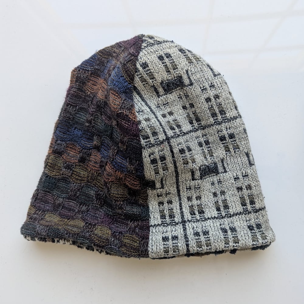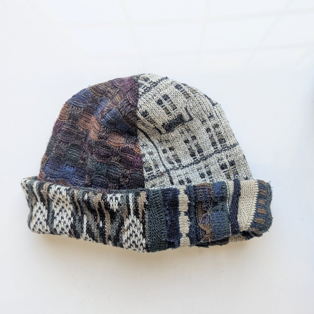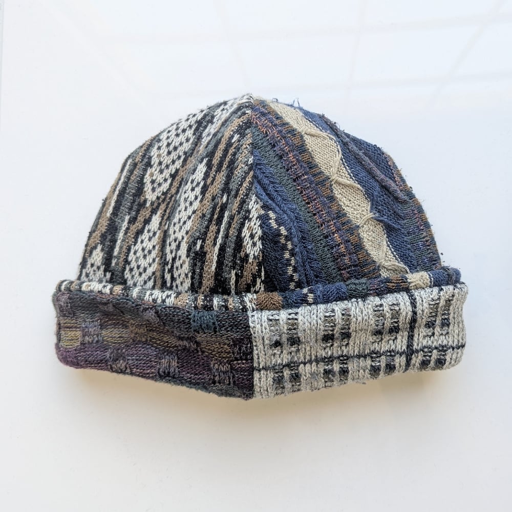Each of these reversible beanies is handmade in Los Angeles using four different vintage sweaters, making every piece truly one of a kind.