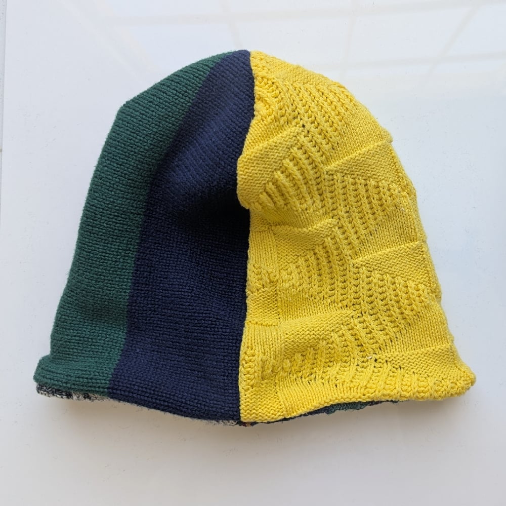 Each of these reversible beanies is handmade in Los Angeles using four different vintage sweaters, making every piece truly one of a kind.