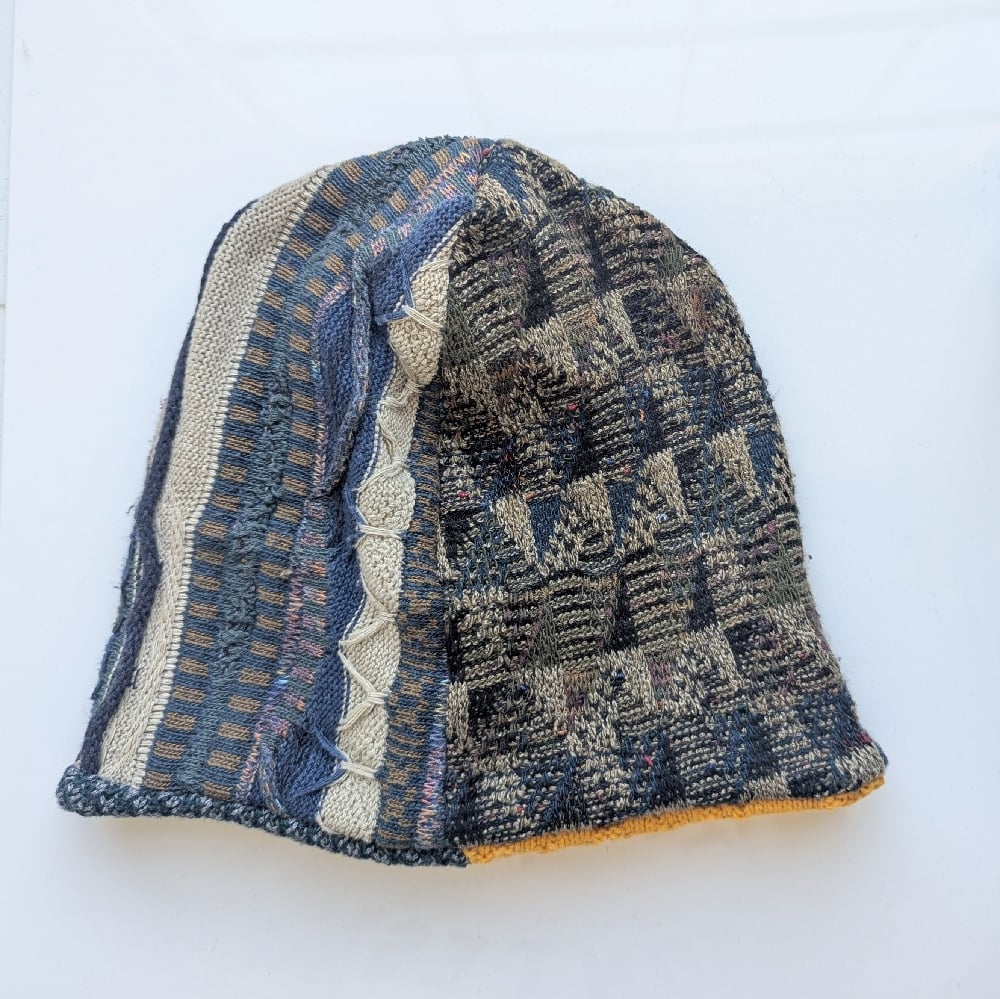Each of these reversible beanies is handmade in Los Angeles using four different vintage sweaters, making every piece truly one of a kind.