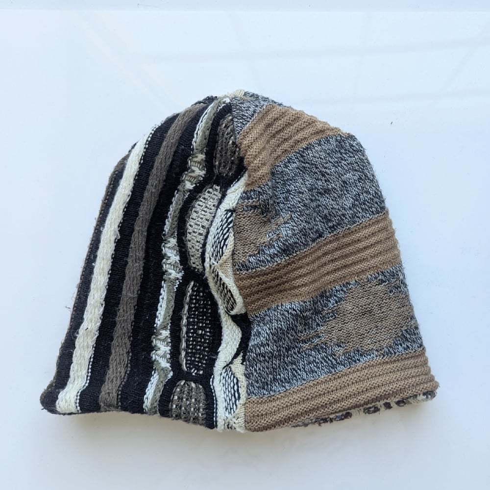 Each of these reversible beanies is handmade in Los Angeles using four different vintage sweaters, making every piece truly one of a kind.