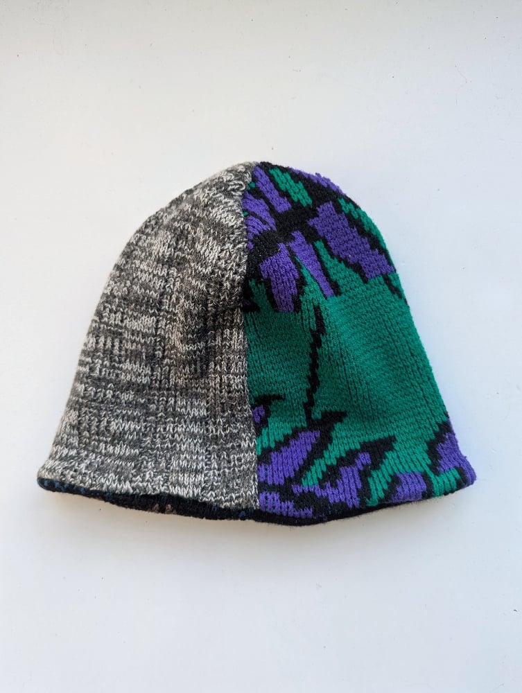 Each of these reversible beanies is handmade in Los Angeles, using four different vintage sweaters, making every piece truly one of a kind. The fabrics used vary from acrylic, wool, to cashmere, depending on the specific beanie.