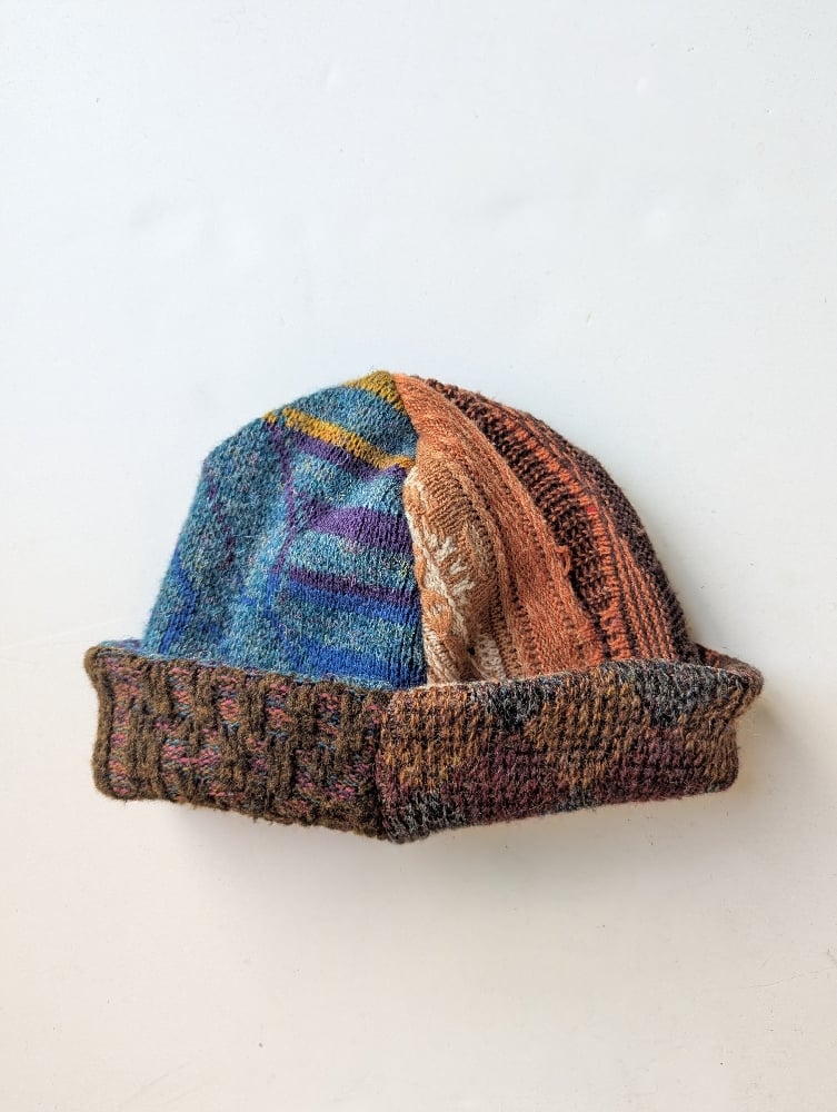Each of these reversible beanies is handmade in Los Angeles, using four different vintage sweaters, making every piece truly one of a kind. The fabrics used vary from acrylic, wool, to cashmere, depending on the specific beanie.